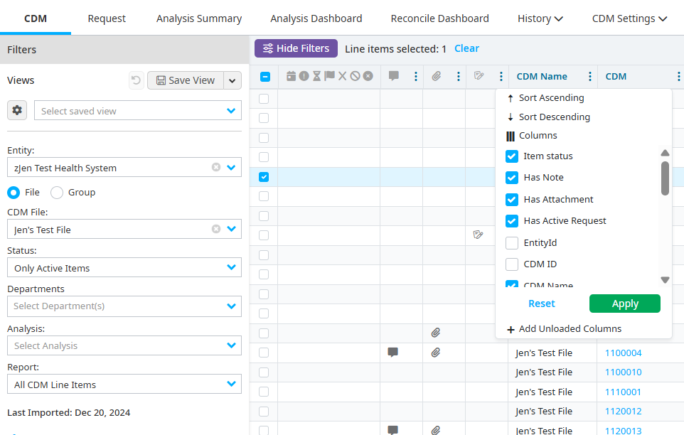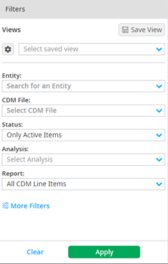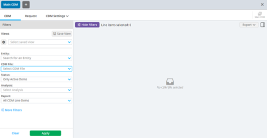 | CDM File | Use the CDM file dropdown to change the file, if you have access to multiple CDM Files. |
