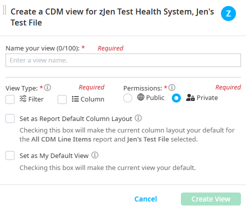 Organization (Hospital/Facility Name) - If only one CDM file exists for your organization, it is the default. If more than one CDM file is available, a dropdown is available. A default CDM file can be set by your organization’s account manager, or it can be saved using the Save File Selections below.