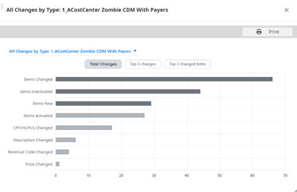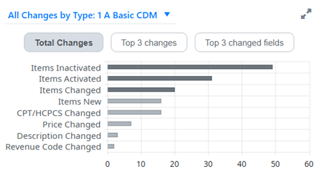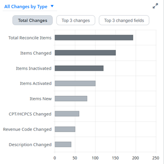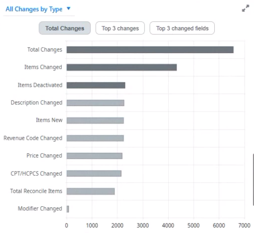 Filter the All Changes by Type graph by selecting the Total Changes, Top 3 Changes, or Top 3 Changed Fields button.