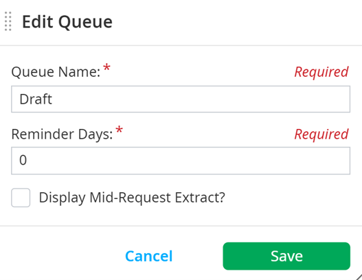 Edit the Queue Name and the number of Reminder Days.