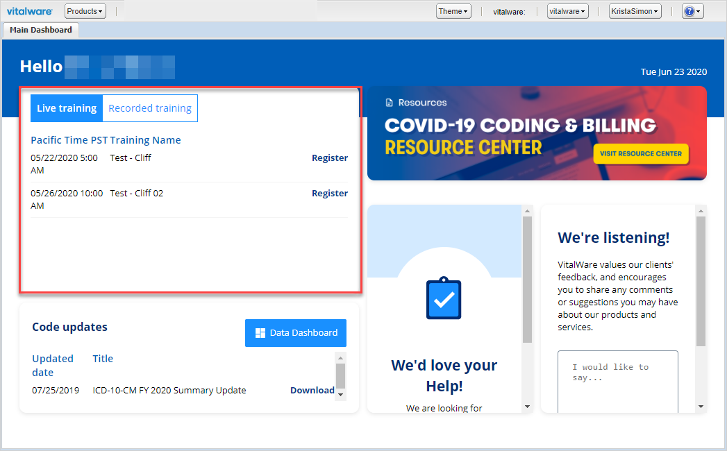 Sign Up for Training You can sign up for training classes on your Vitalware dashboard in the Training Info section.
