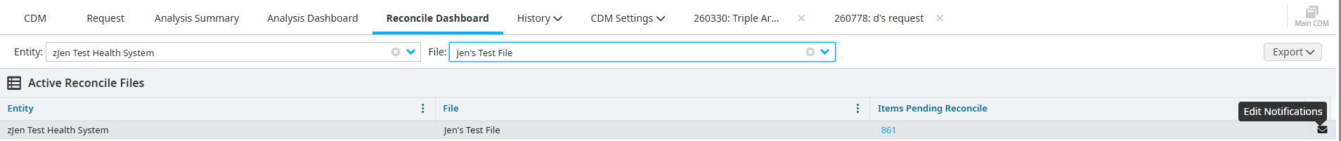 Click the Edit Notifications icon in the last column on the Active Reconcile Files table.