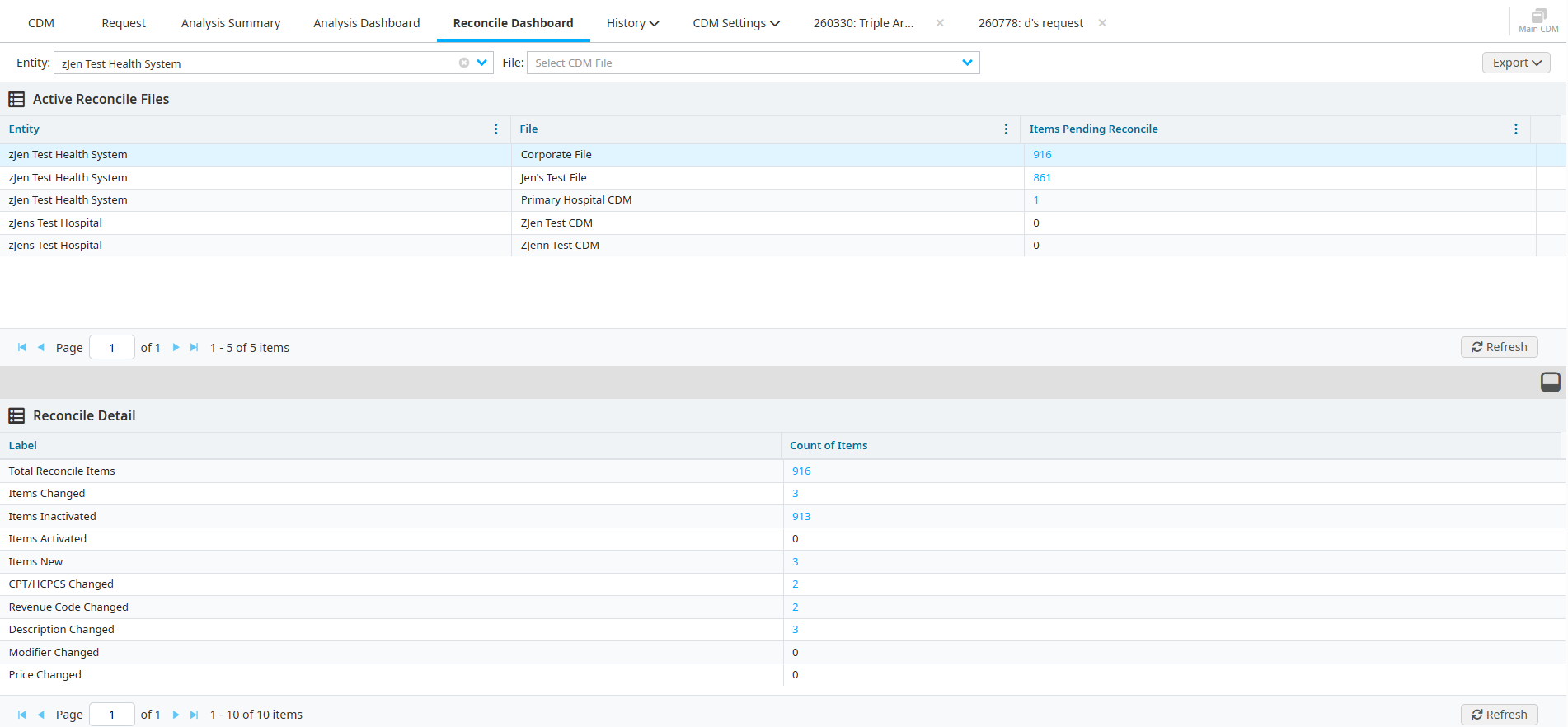 Click the link in the Items Pending Reconcile column to view the Reconciliation Report in the CDM tab.