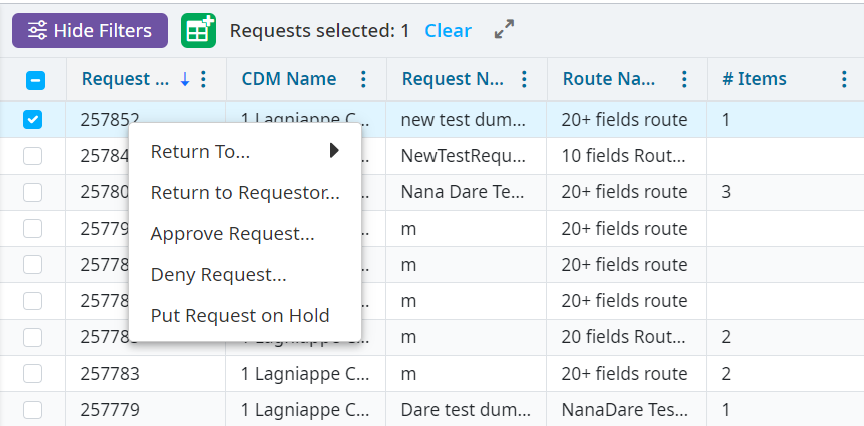 Return to Requestor - Return the request to the original requestor. An email notification is sent if the selected request is in a submitted state.