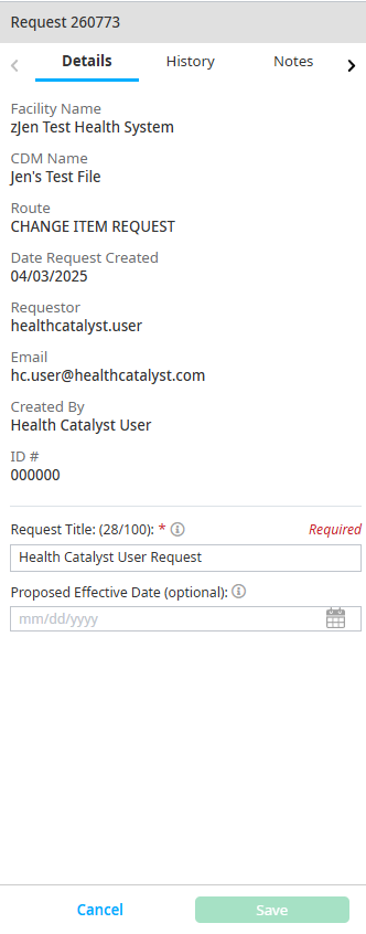 Select a future effective date by using the Proposed Effective Date field on the Request Detail tab, if needed. The approved date the request was made is the effective date if no selection is made.