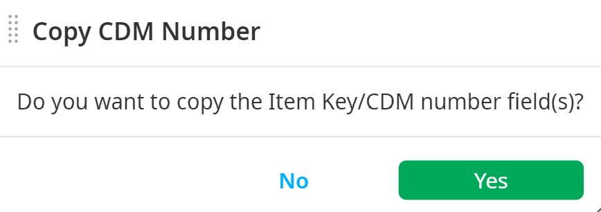 Select whether or not you want to copy the item key and CDM number.