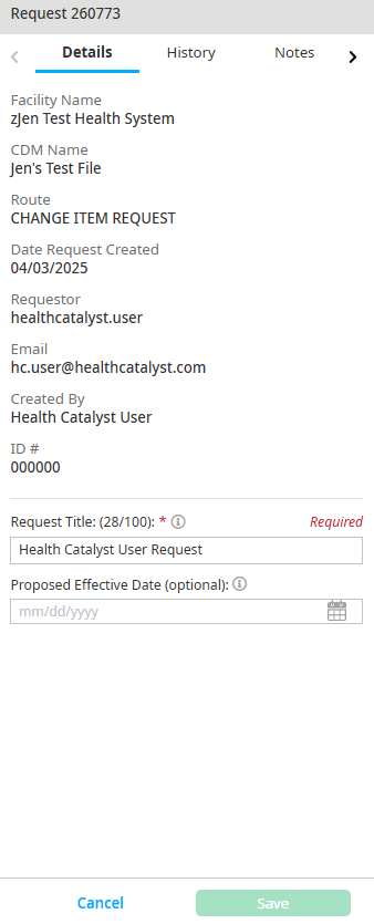 Select a future proposed effective date by clicking the Proposed Effective Date field on the Request Detail tab, if needed. The date the request was approved is the effective date if a date selection is not made. You cannot select a date greater than a year from the current date.