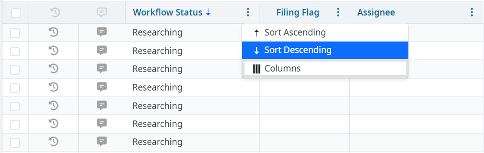 Table columns may have default sorting applied when you open a table. You can change or remove the sorting as needed. Additionally, sorting a column organizes all results across every page.