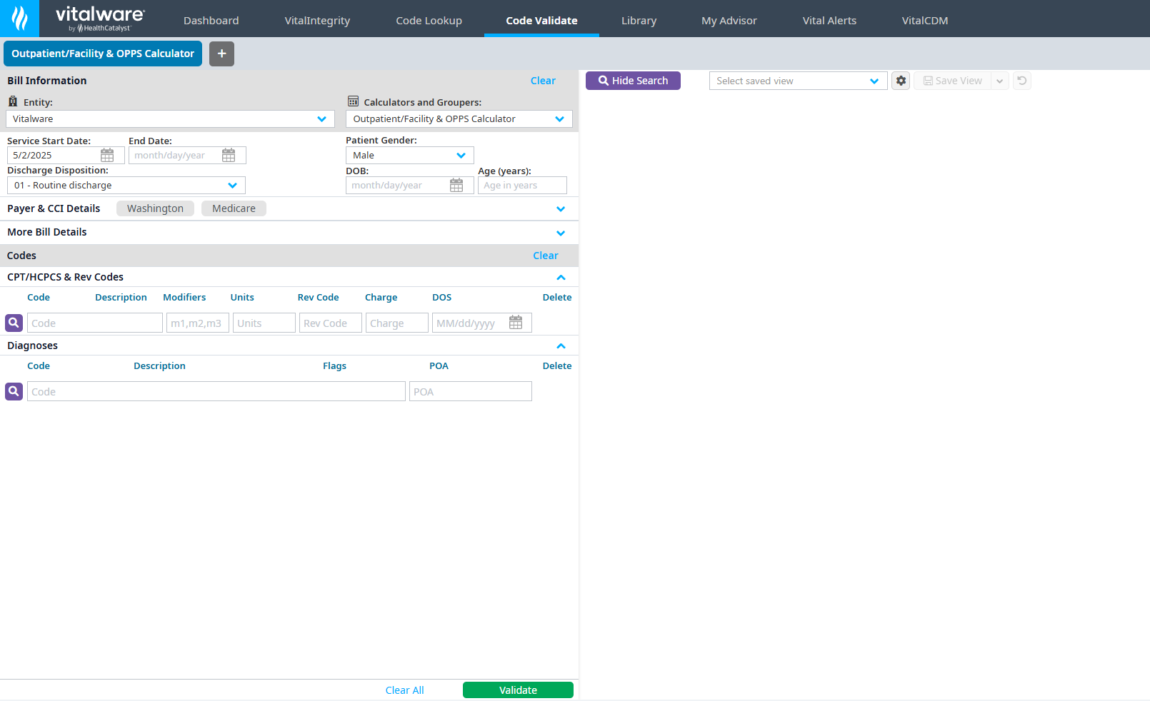 The Code Validate module enables searching for Medical Necessity issues and CCI edits in a single entry pane. Code Validate has the following calculators and groupers: